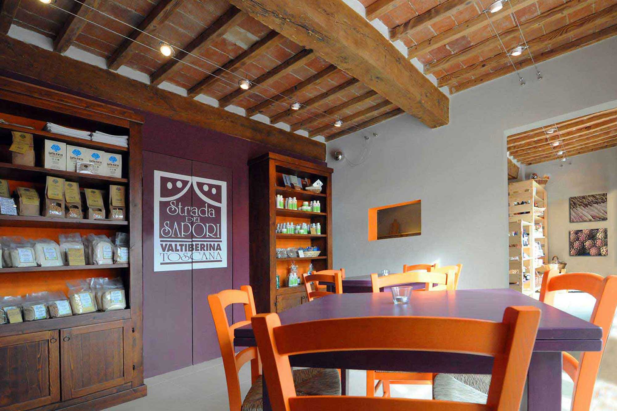 The shop “InValtiberina” is located in an historic building in the center of Sansepolcro and hosts an activity closely linked to the territory and the surrounding countryside: inside it is possible to taste and buy local products made by Farms of "Strada dei Sapori della Valtiberina Toscana".