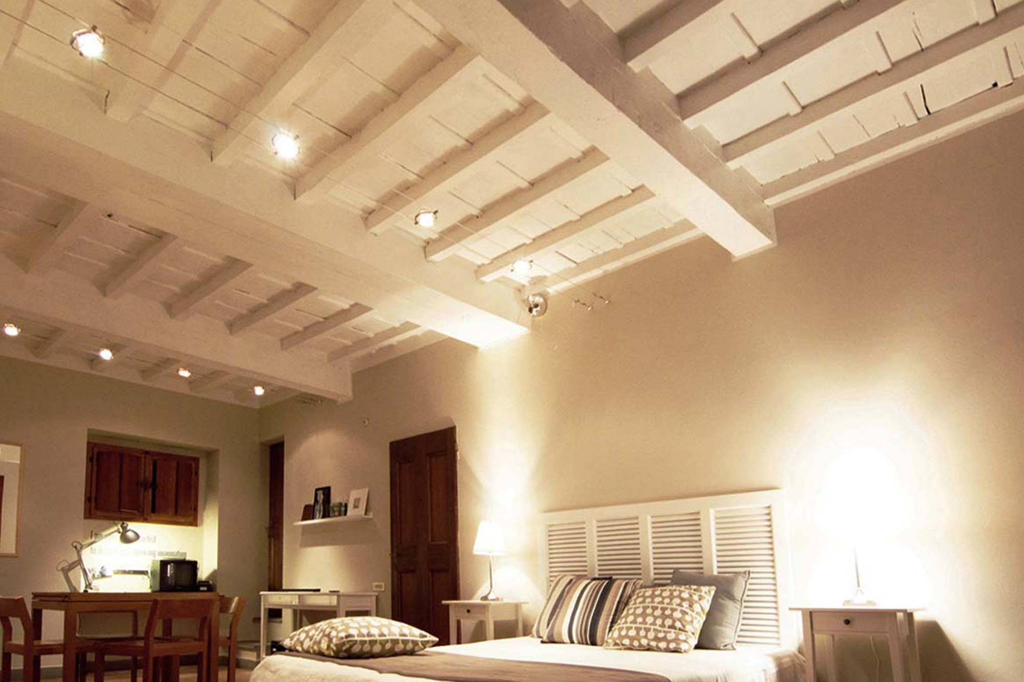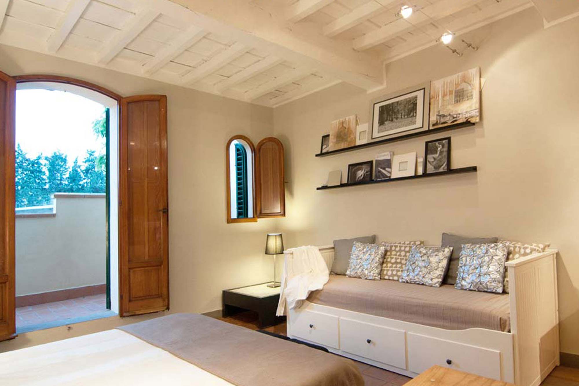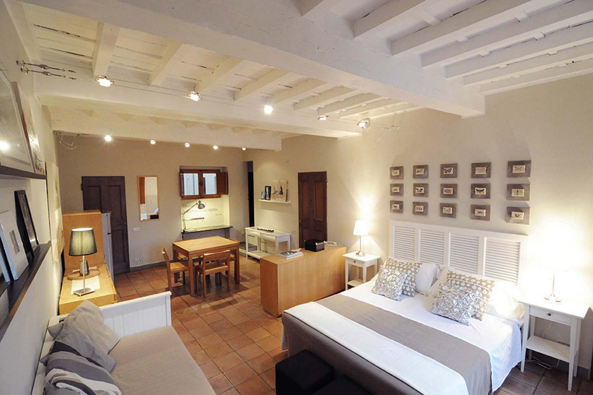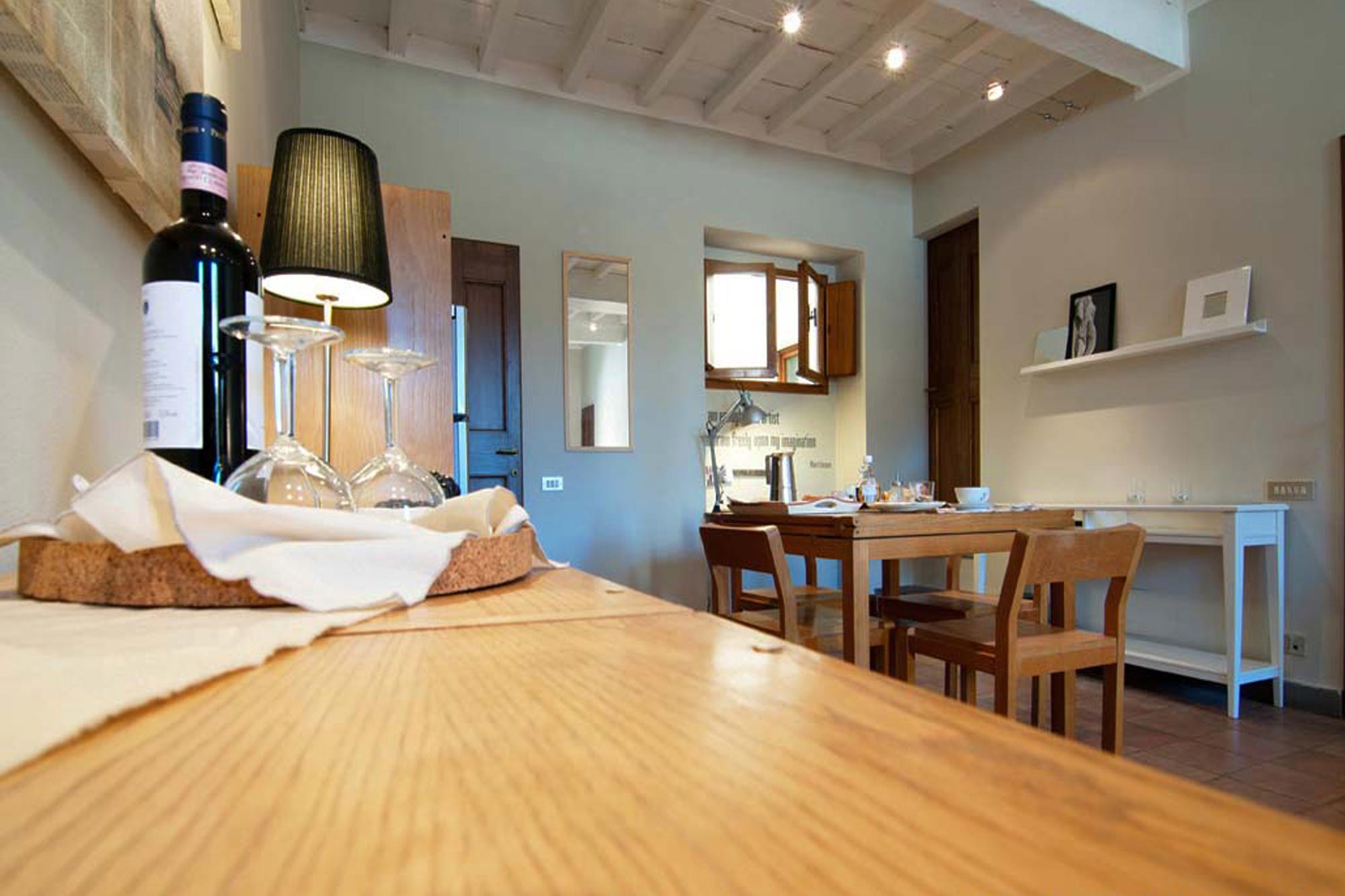 Siamo in pieno centro storico di Firenze, a pochi passi dalla stazione di Santa Maria Novella e dal Duomo, nella storica Via Guelfa. Questo appartamento con travi a vista sbiancate viene di norma utilizzato per affitti brevi ed è stato oggetto di un restyling curato dallo Studio Biancalani fino alla definizione dei minimi dettagli. L'appartmento aveva un grande potenziale ma si presentava poco curato e le scelte cromatiche che erano state effettuate dai precedenti proprietari ne esaltavano i difetti. le travi erano infatti dipinte con un impregnante marrone-nero e gli ambienti risultavano quasi soffocanti. Sbiancare le travi è stato un dovere!