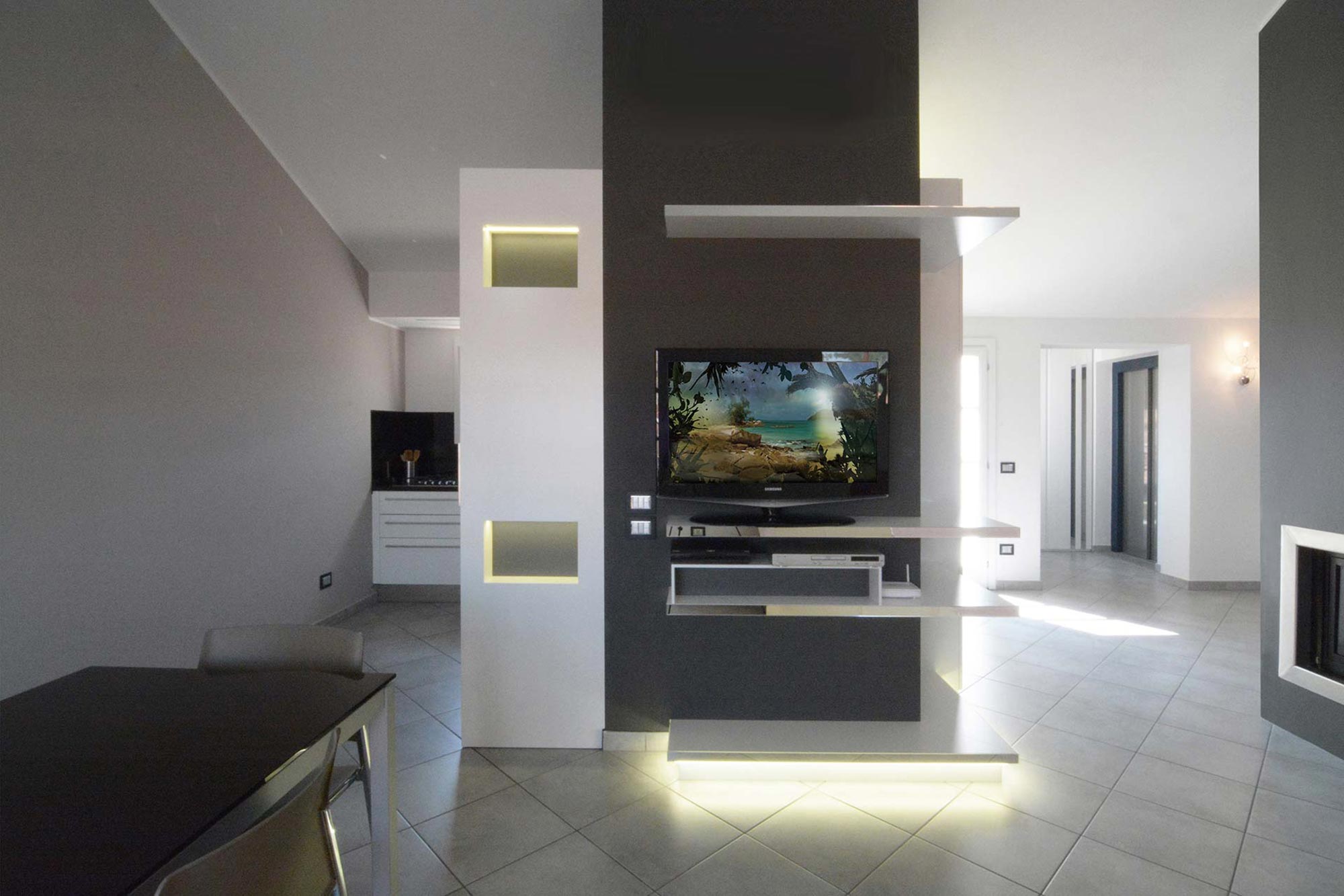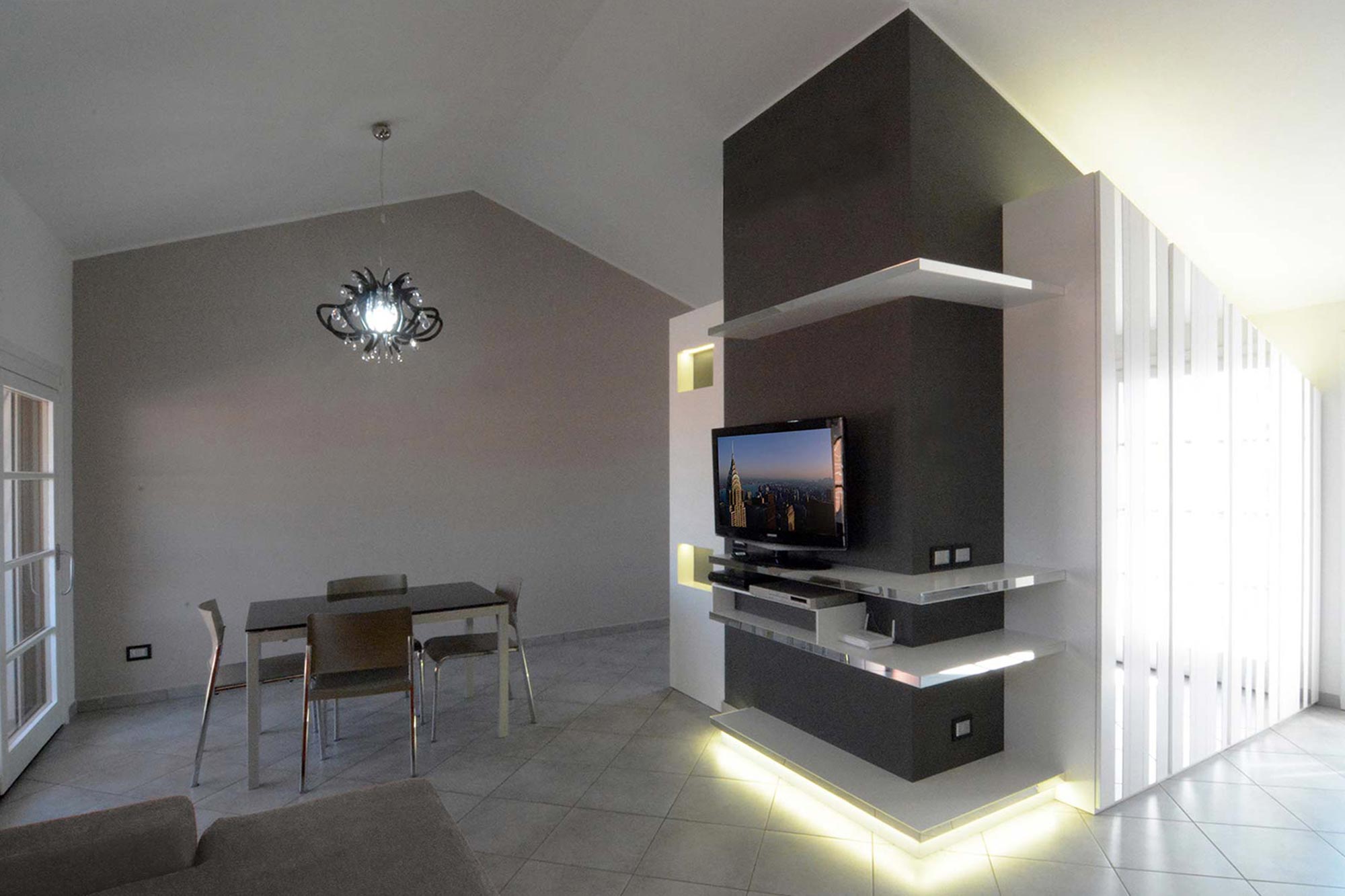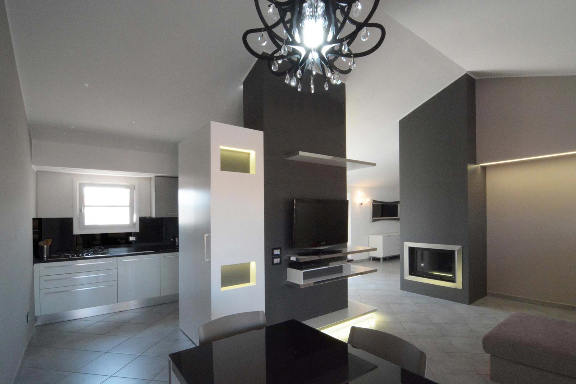 Mood elegante, moderno e raffinato per il progetto d'interior design di questo splendido attico nella zona più esclusiva di San Giovanni Valdarno. Il nostro Studio di Architettura si è occupato a tutto tondo del progetto degli interni, dal restyling al disegno degli arredi su misura; dalla direzione artistica dei lavori allo studio e al progetto di lighting design.